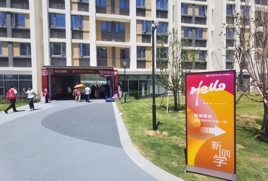 宁波东方理工大学宿舍口下的迎新标识